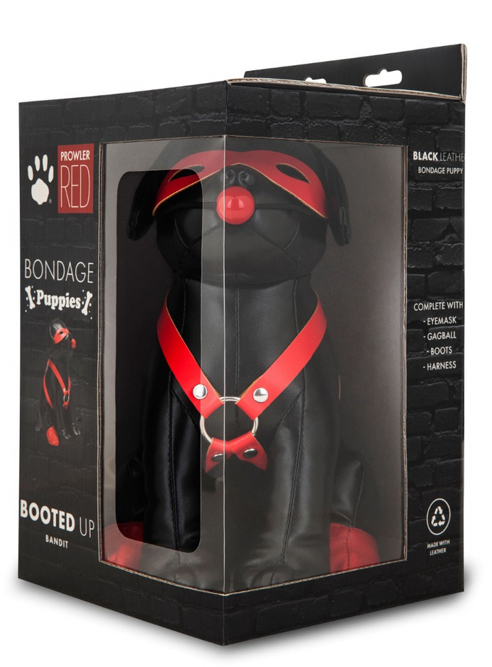 Le Chien en Simili BANDIT 24 cm Noir est un accessoire que vous voudrez exposer pour annoncer la couleur à vos invités. Il présente un masque pour les yeux rouge, un harnais, un bâillon-boule et de jolies bottes rouges sur ses pattes arrière. Offrez-le à un pup ou à son maître. Hauteur de 24 cm. En simili
