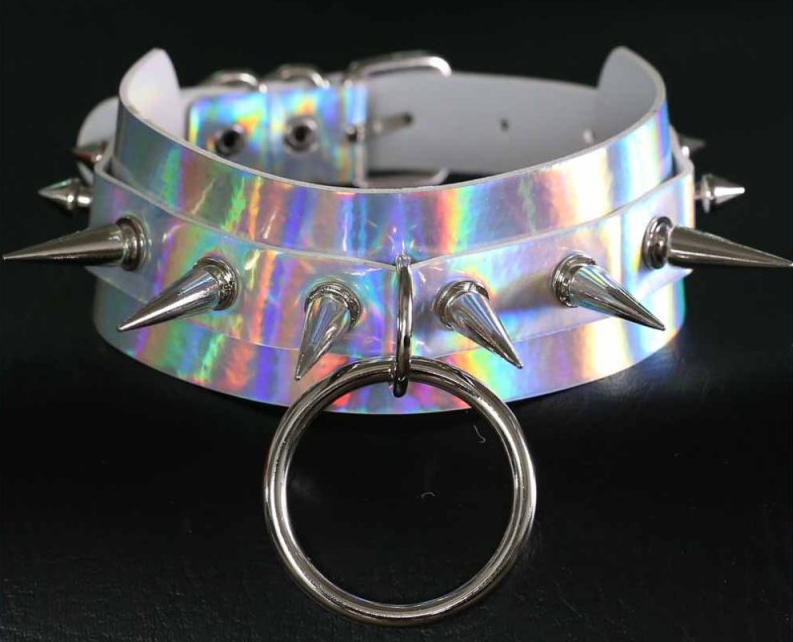Ce collier à pointes de la gamme Strobo Laser est un accessoire ras de cou conçu avec : une belle couleur argentée brillante des pointes en métal de 3cm l’anneau central pour y placer une chaîne. La largeur est de 4.5cm.Le tour de cou va de 31 à 41cm. En simili (polyuréthane)