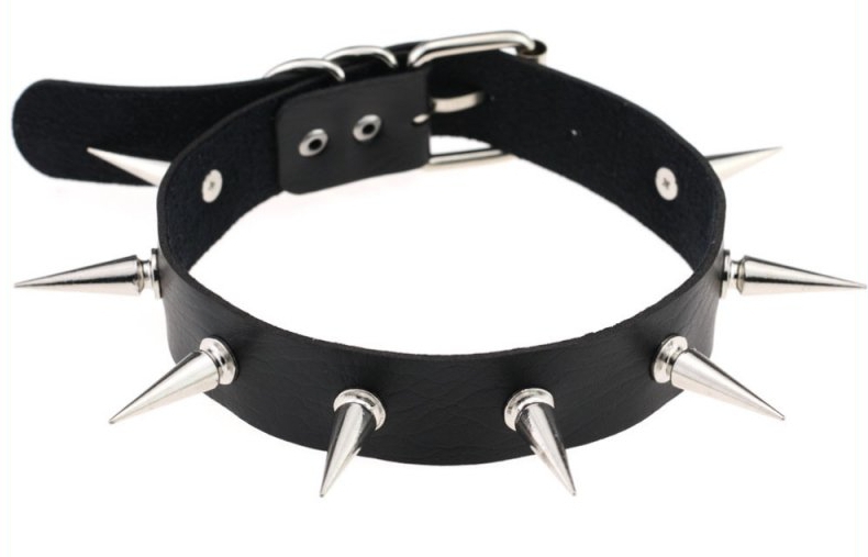 Ce collier à pointes est un accessoire idéal pour rendre le look plus sexy et Dark.Il se compose d’une largeur de 2.5cm et de pointes en métal de 3cm de longueur.Le tour de cou va de 32 à 40cm. En simili (polyuréthane)