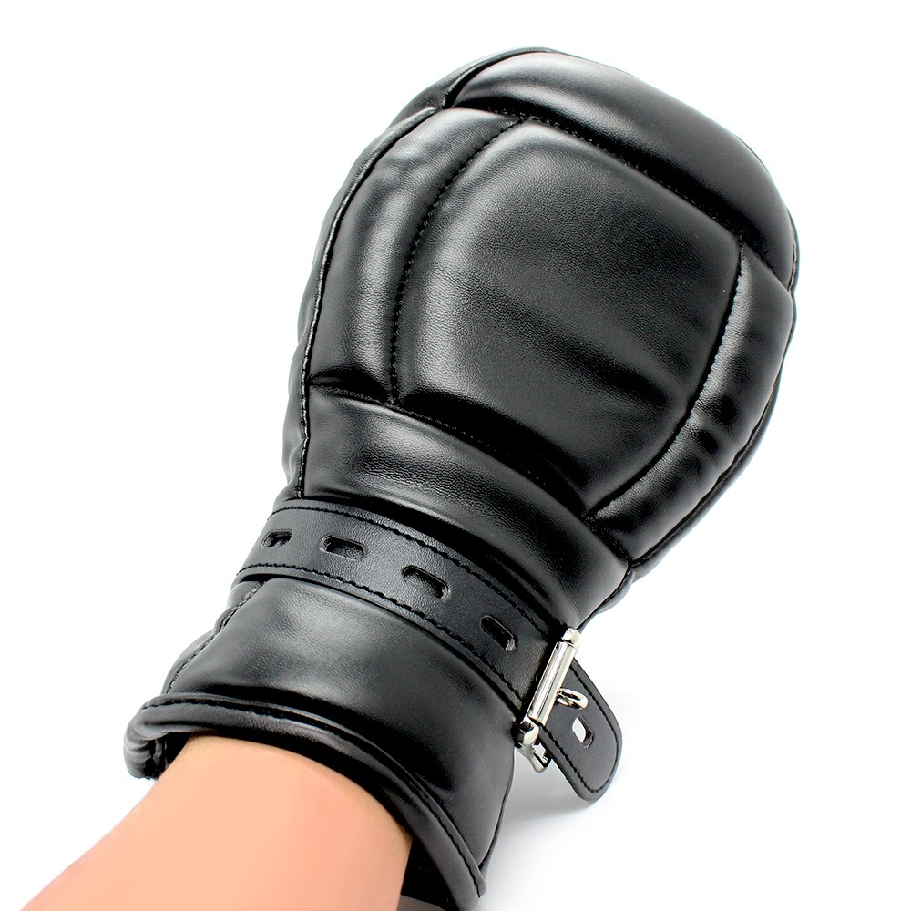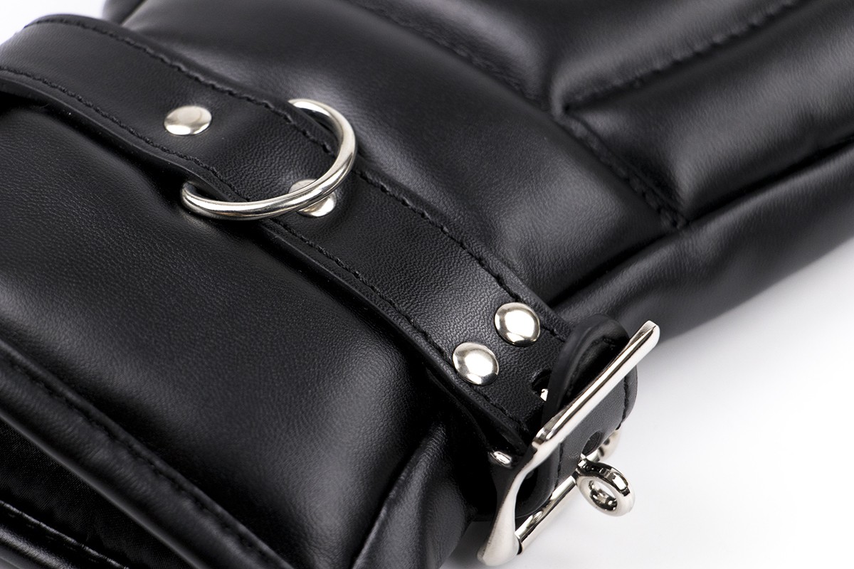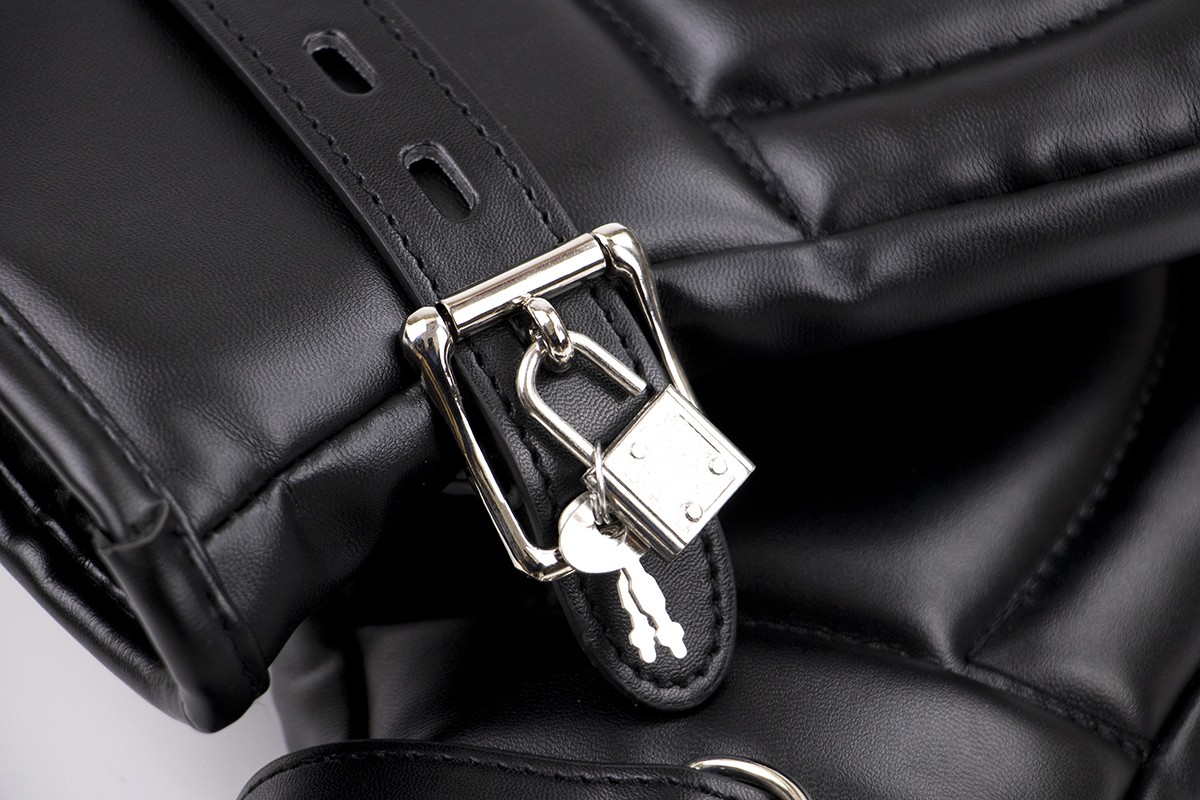 Ces gants PAdded Lock de la marque Kiotos sont idéals pour la soumission.En effet, il s’agit d’un accessoire empêchant l’utilisation des mains. Les deux gants peuvent se lier avec le cadenas (fourni). Les gants sont fabriqués en simili cuir (polyuréthane) et doublure nylon.Dimensions: 27 x 16 cm