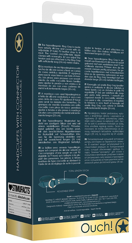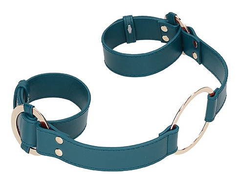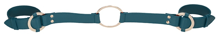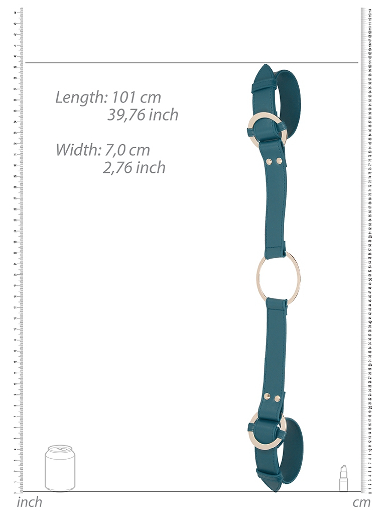 Ces menottes pour les poignets permettent de lier les mains et de prendre une position de soumission.Elles sont conçues avec deux sangles ajustables et un anneau central en métal doré.Largeur de 3cm.Longueur de 100cm. En polyuréthane