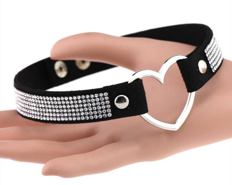 Ce ras de cou Heart Strass est un bijou composé d’une bande de 1.8cm avec des strass brillant.Il a un coeur en métal au centre (hauteur de 3.8m). Tour de cou de 34 à 38cm. Fermeture avec des boutons-pressions. En imitation feutrine