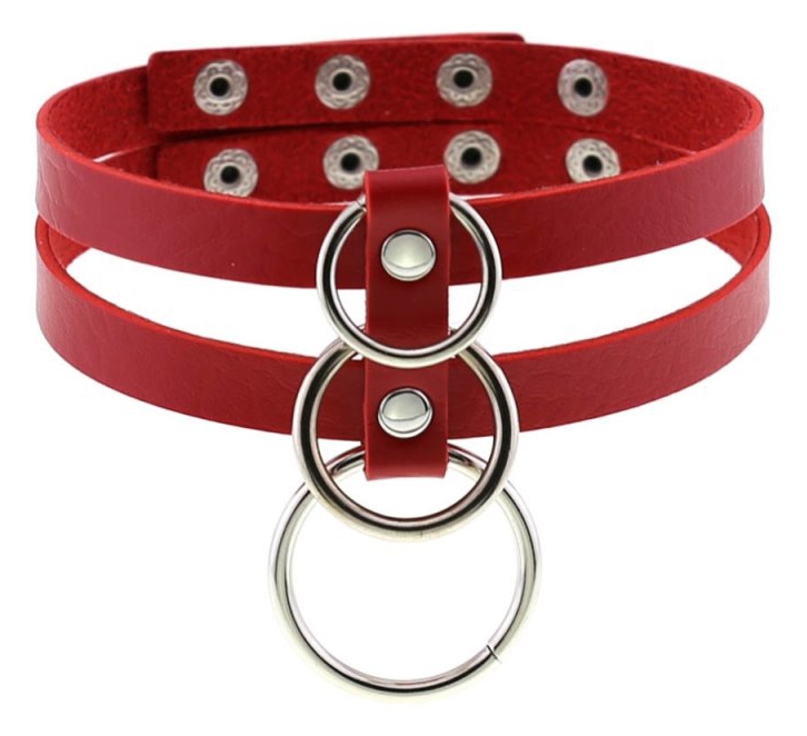 Avec 3 anneaux métal composés de tailles différentes pour un style élégant.Tour de cou de 30 à 36cm. En simili (polyuréthane)